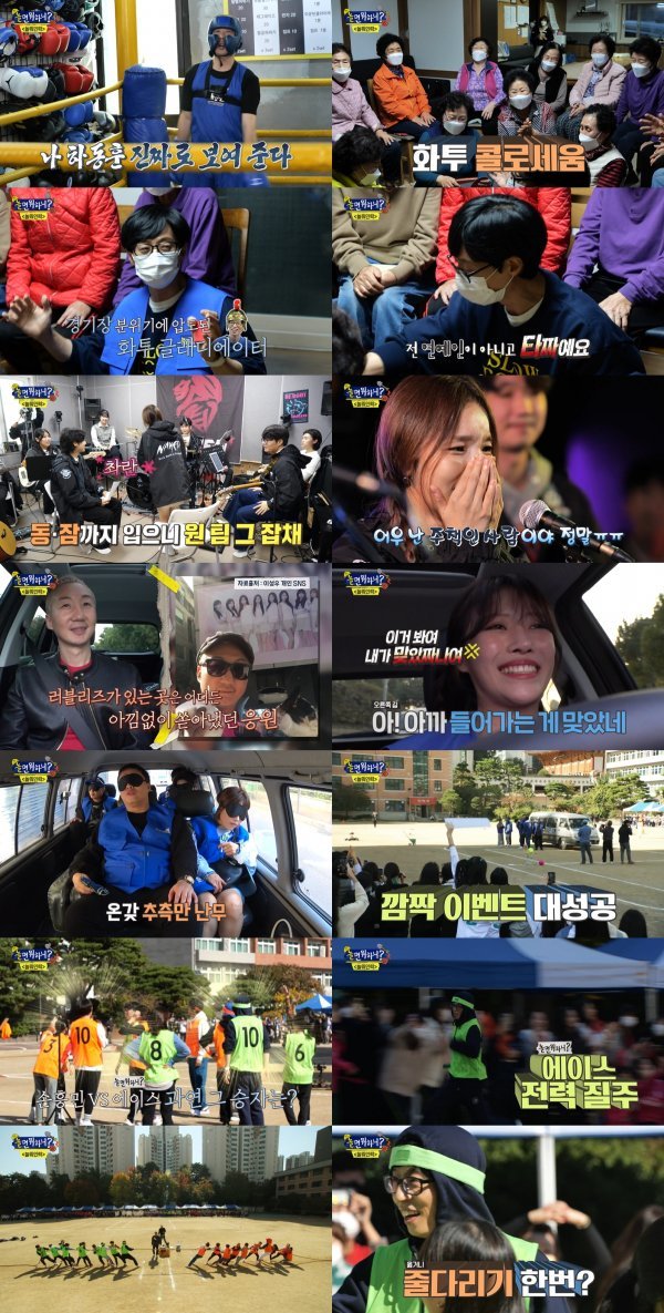 극비리에 진행된 서프라이즈에 멤버들은 안대를 벗고 하나둘씩 상황 파악에 나섰다. 1학년과 2학년 선생님들의 이어달리기 대결에 계주로 참여하게 된 멤버들은 3년 만에 열린 체육대회에 열기를 더했다. 첫 번째 주자 신봉선의 활약으로 1학년 팀이 출발부터 앞섰고, 2학년 팀 박진주의 경보 달리기로 인해 그 간격은 더 벌어졌다. 이때 2학년 팀 체육선생님 맹추격으로 간격이 많이 좁혀졌고, ‘총알 탄 사나이’ 이이경 질주로 두 팀은 마지막 주자를 앞두고 원점에서 다시 출발하게 됐다. 그렇게 마지막 주자 유재석과 국어선생님 맞대결에서, 2학년 팀이 극적인 대역전승을 거두게 됐다. 유재석의 1학년 팀은 패배의 설욕을 위해 줄다리기를 제안했고, 결국 원하던 승리를 거두게 됐다. 마지막으로 유재석은 수능 준비 때문에 이 자리에 없는 3학년 학생들을 위해 응원의 메시지를 남기며 훈훈함을 더했다.