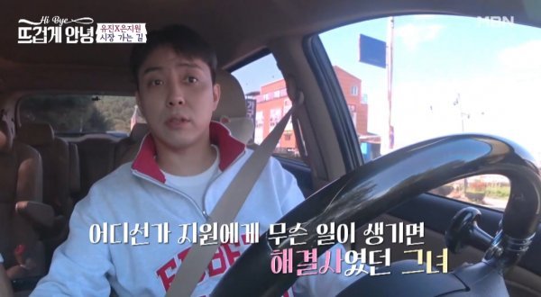 이동 중에 은지원은 "아내(민지영)가 남편(김형균)을 되게 좋아하는 것 같아"라고 운을 떼며 "옛날 아내 보는 느낌이야, 비슷해”라고 말했다. 유진은 “소탈하고 좀 센 그런 느낌?”이라고 물었고, 은지원은 “아내가 유도선수였다. 운동권이다. 진짜 세다. 하와이 있을 때 남자들이랑 내가 싸움 나면 다 (전 아내)가 해결했다"라며 웃으며 전 아내를 언급했다.