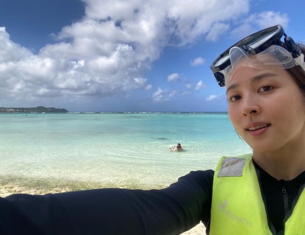 배우 한혜진이 남편 기성용, 딸과 함께 괌에서 행복한 시간을 보냈다.