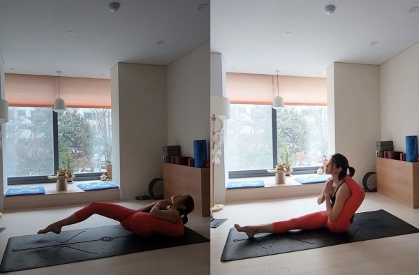 이어 그는 “하루에 이렇게 두시간 정도 내 몸에 집중하고 마음의 분주한 움직임도 인식해보고 인식한 후 깊은 호흡으로 차분히 가라앉히고 내면의 의식으로 고요해보고.. 참 요가가 고맙다”라고 덧붙였다.