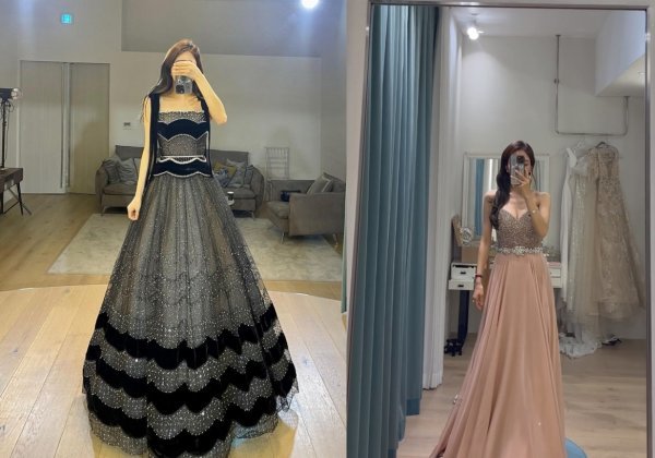 그러면서 “라팸님들이 골라주실 드레스 4번과 5번이에요! 본식 때 입을 드레스... 베뉴는 신라 영빈관인데, 대표님과 남편은 5번을 추천했고, 저는 살짝 과한 것 같아서.. 어른들이 오는 자리라 배 부분을 가리면 이 드레스의 매력이 떨어질 듯 하여;; 저와 실장님은 4번을 고민 중이에요” 라며 신중하게 고민하는 모습을 보였다.