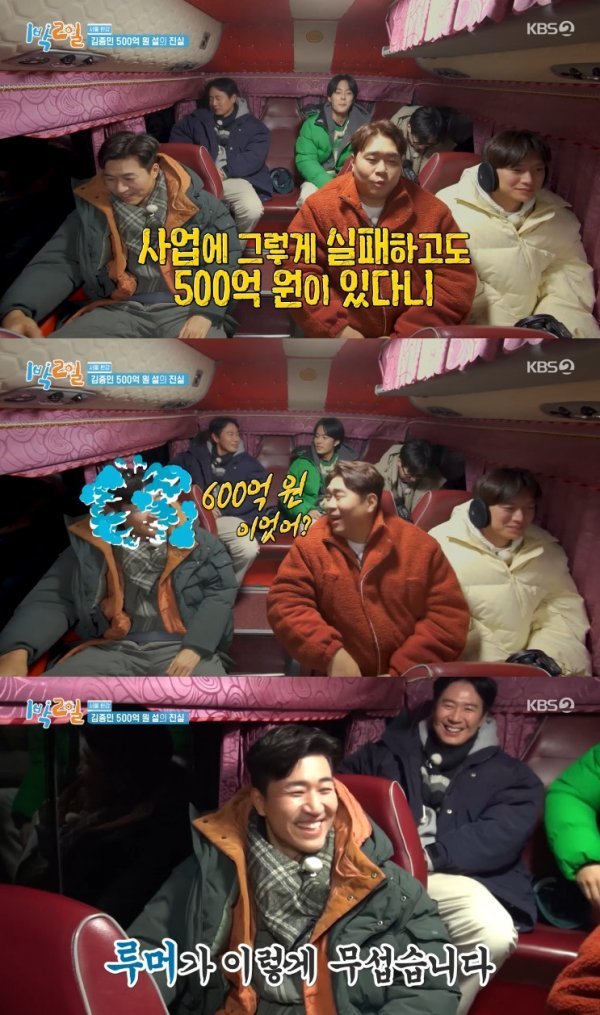 KBS2 예능 \'1박2일 시즌4\' 김종민이 재산 500억 원 소문에 대해 입을 열었다.
