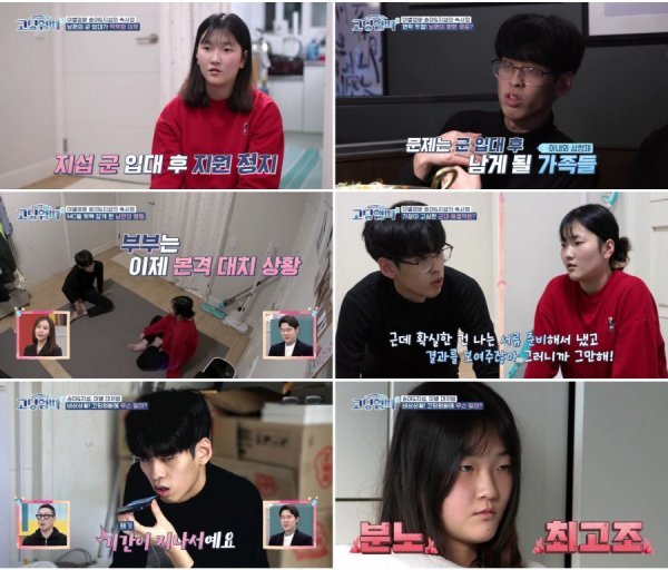 아들 셋을 둔 ‘고딩엄빠’ 이송이-이지섭 부부가 남편의 군입대 문제를 두고 갈등했지만, 이지섭이 ‘병역 감면 신청’을 약속하며 화해를 이뤘다.
