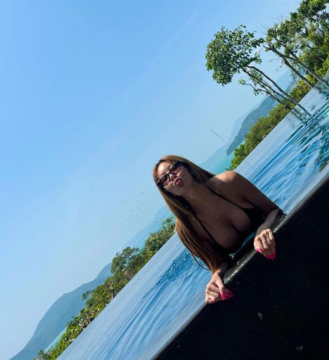 함께 공개한 사진 속 제시는 수영장에서 휴가를 즐기고 있다. 검은색 비키니를 입고 제시만의 아찔한 몸매 라인을 자랑했다.