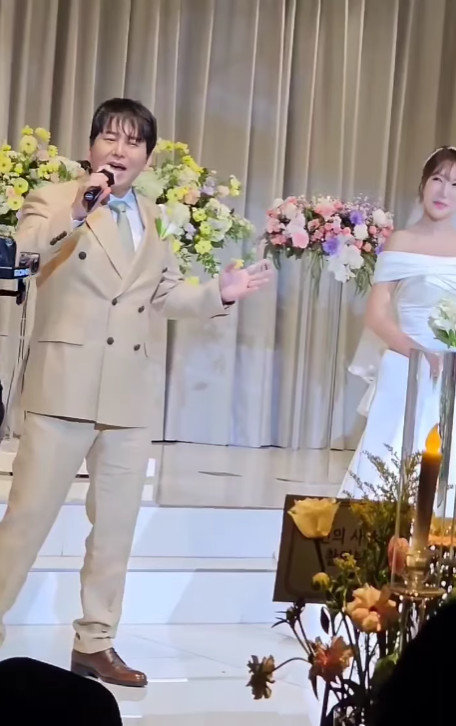 공개된 영상 속 윤기원은 결혼식에서 축가를 부르고 있는 모습이다.