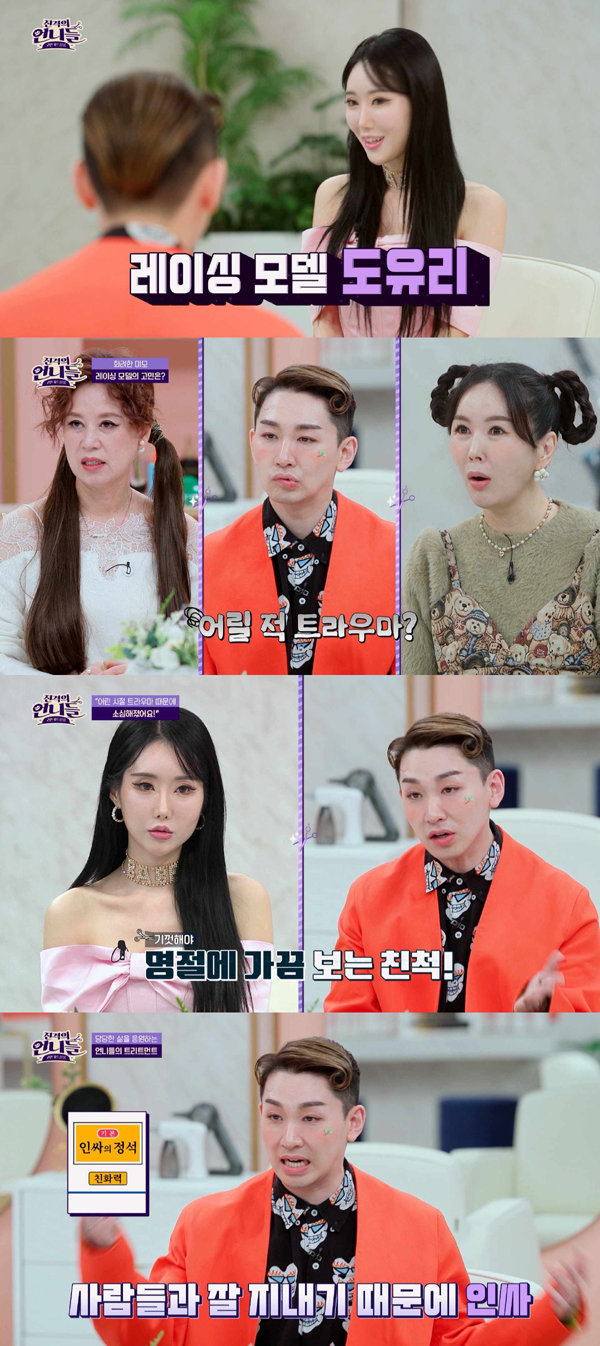 또한 사연자는 “모델로 활동할 때는 오히려 도도한 이미지로 ‘인싸’인 척 쎄 보이게 한다. 사람들이 저를 어려워하는 게 좋다”고 밝혔다. 이에 김호영은 “인싸 이미지 해석을 잘못한 것 같다. 기가 세기 때문에 인싸가 아니라 사람들과 잘 지내기 때문에 인싸인 것”이라며 “남이 다가오지 못하게끔 하는 건 ‘아싸’로 만든다”며 진심 어린 조언을 건넸다.