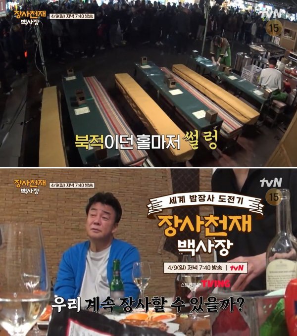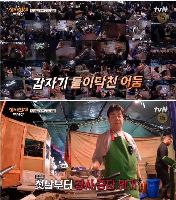 돌발 위기 상황을 확인할 수 있는 tvN ‘장사천재 백사장’ 2회는 오늘(9일) 일요일 저녁 7시 40분 방송된다.
