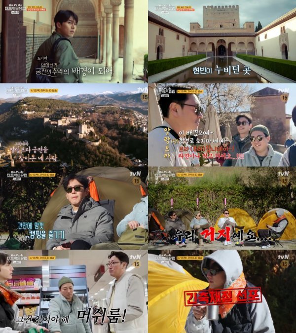 13일 방송되는 \'텐트 밖은 유럽 - 스페인 편\' 7회에는 유럽 여행의 필수 코스로 꼽히는 스페인 그라나다 알람브라 궁전을 방문하는 조진웅, 최원영, 박명훈, 권율의 이야기가 담긴다.