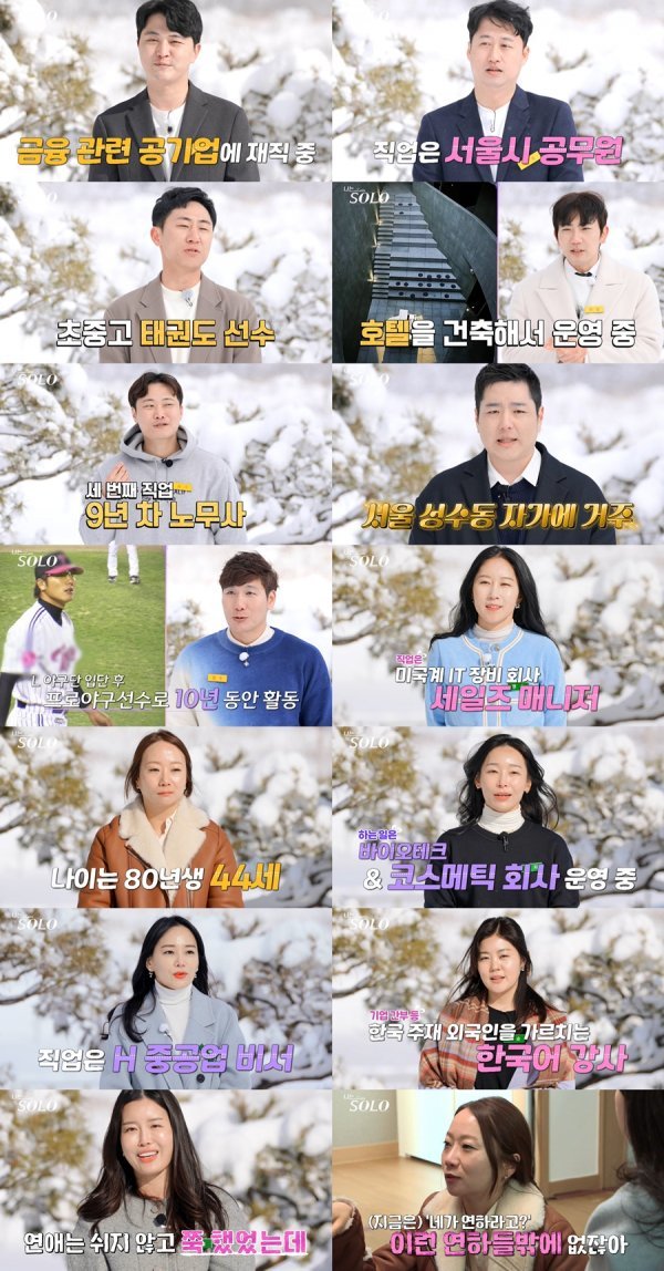 다음 날 오전, 대망의 ‘자기소개 타임’이 진행됐다. 우선 영수는 43세로, 금융 관련 공기업에서 일하는 직장인이었다. 서울에 34평 신축 아파트 자가를 소유하고 있다는 그는 “차분하고 자기 자신에 대한 프라이드가 있는 분이 이상형”이라고 밝혔다. 영수와 마찬가지로 43세인 영호는 서울시 공무원으로, 직장동료 대표로 동대문구청장의 응원을 받아 모두를 놀라게 했다. 이어 “남중, 남고, 군대, 시공회사까지 남자의 삶을 살아 여자를 잘 모른다”고 ‘퓨어남’ 면모를 어필했다.