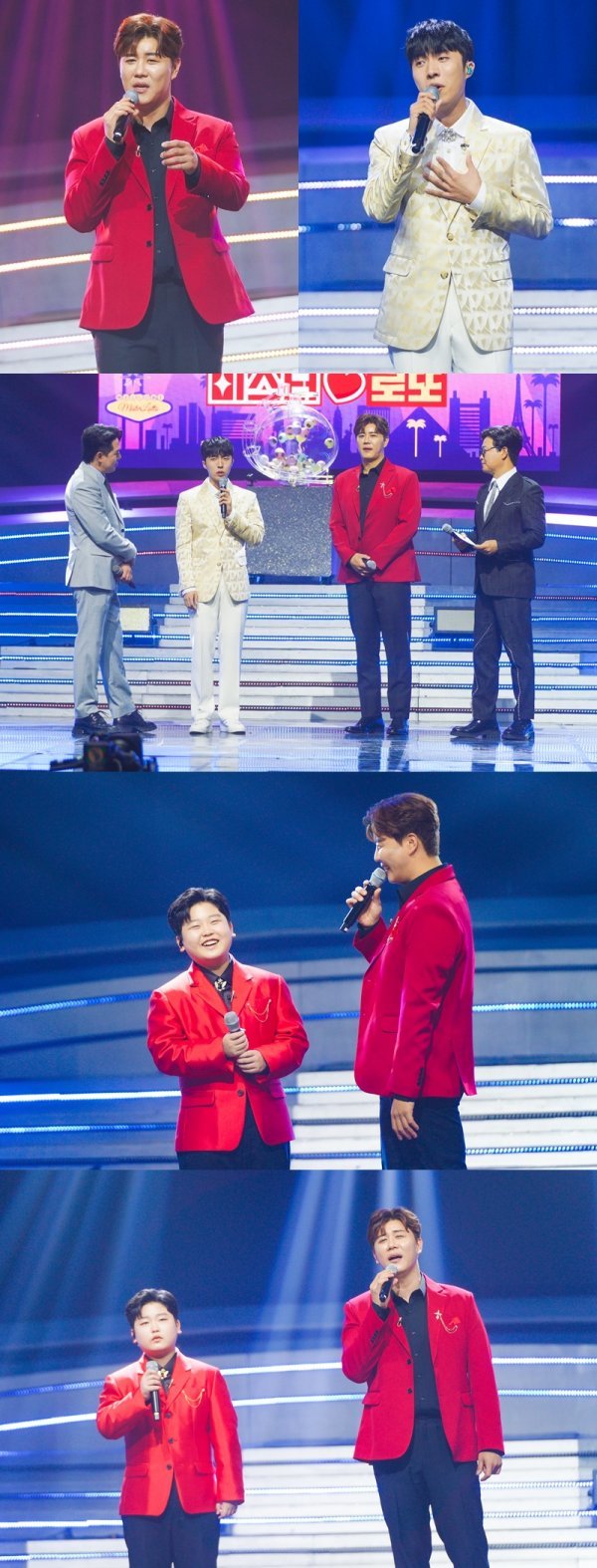 그런가 하면 이날 진해성은 TOP7 막내 박성온과 ‘1일 부자(父子)’를 결성한다. 동글동글 귀여운 이미지가 꼭 닮은 두 사람이 등장하자 여기저기서 “뚜비뚜바 뚜뚜바~”라며 개그 코너 ‘아빠와 아들’ BGM이 자동 재생돼 웃음을 자아낸다. 하지만 웃음도 잠시, 진해성과 박성온은 스페셜 듀엣 무대로 송대관의 ‘약손’을 부른다. 둘만의 뭉클한 감성이 ‘미스터로또’를 감동의 바다로 만든다.