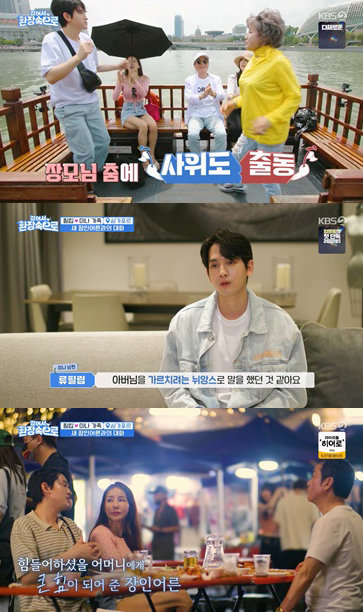 지난 21일(일) 방송된 KBS2 예능 ‘걸어서 환장 속으로’(연출 김성민 윤병일/이하 ‘걸환장’) 18회는 예비 둘째 며느리와 함께한 ‘광산 김씨 패밀리’ 김승현-장정윤 가족의 남해 하동 여행과 결혼 6년 차의 17살 연상연하 부부 미나-류필립이 황혼 재혼 5년 차 미나의 부모님 장무식-나기수, 여동생 심성미와 함께 떠난 싱가포르 가족 여행이 펼쳐졌다.