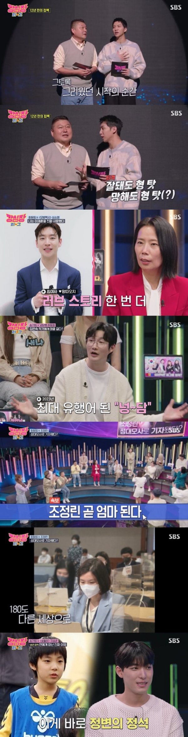 이날 첫 방송에서는 12년 만에 2MC로 다시 만난 강호동, 이승기가 토크 썸네일을 배경으로 화려한 오프닝을 장식했다. 두 사람은 시작부터 토크 케미가 폭발했다. 강호동은 “12년 만에 ‘강심장 리그’로 인사드린다. 무척 떨린다”고 말했고 이승기는 “떨림보다는 설렘이 가득하다. 형만 믿고 가는 거다”라며 “잘돼도 형 탓. 망해도 형 탓”이라고 쐐기를 박아 웃음을 자아냈다.