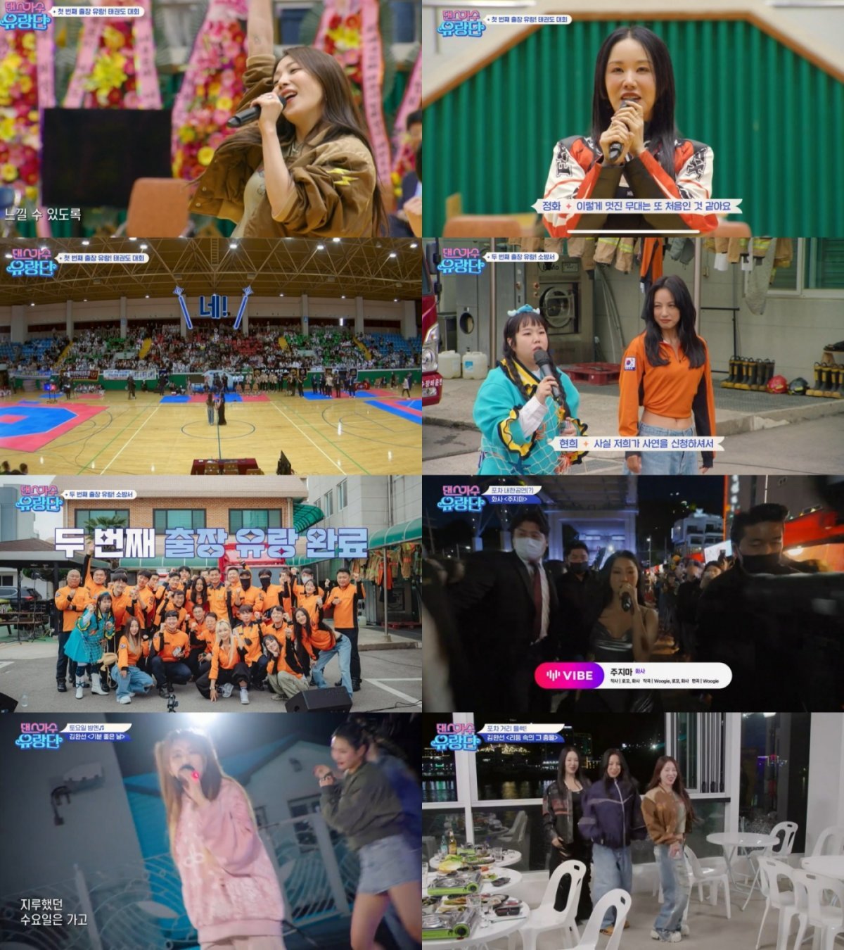 이후 멤버들은 팬들의 사연을 받고 첫 출장 유랑에 나섰다. 무려 10만여 건의 사연이 쏟아지며 \'댄스가수 유랑단\'을 향한 열기를 느낄 수 있게 한 가운데 첫 번째 출장 유랑은 태권도 대회장에서 펼쳐졌다. 사연의 주인공은 엄정화의 \'페스티벌\'과 보아 \'No.1\'을 신청했고, 엄정화와 보아는 매니저도, 리허설도 없이 바로 무대에 투입됐다. 보아를 본 아이들은 처음에 누구인지 몰라봤지만 \'No.1\' 무대를 보고 점차 입덕했다. 엄정화는 \'페스티벌\' 무대로 세대불문 떼창을 이끌었고, 공연을 마친 두 사람은 "관객들에게 기를 받은 느낌"이라며 벅찬 기분을 내비쳤다.