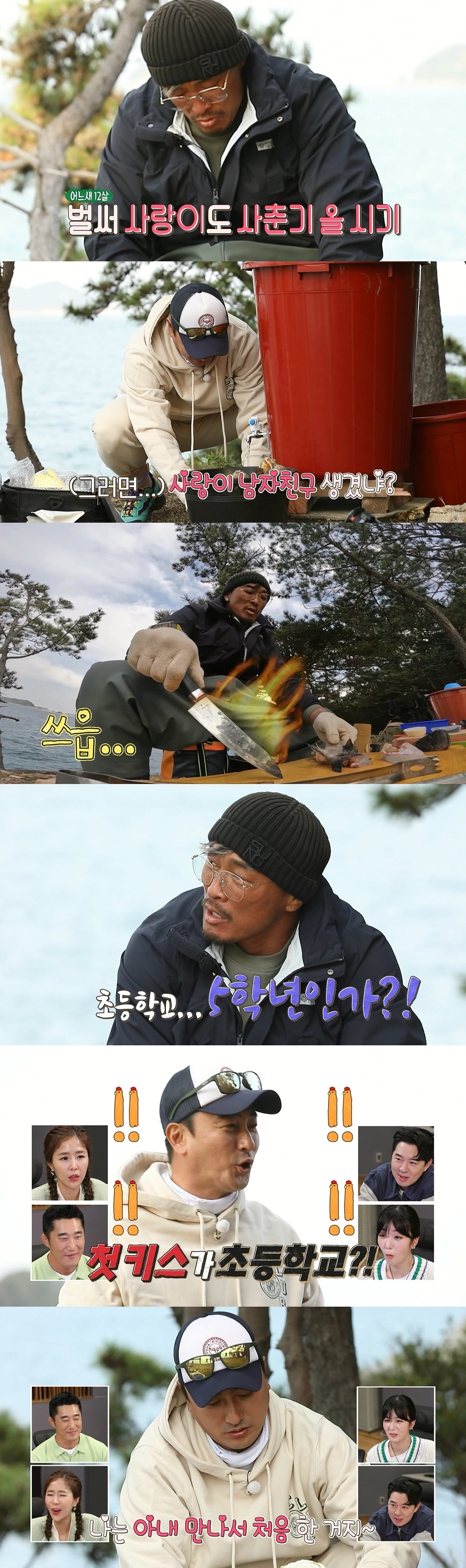 또한, 이들은 첫사랑 이야기로 수다를 이어간다. 이때 추성훈은 “첫키스는 초등학교 5학년 때, 첫사랑은 초등학교 2학년 때”라고 고백해 무인도를 발칵 뒤집어 놓는다. 반면 안정환은 “내 첫키스 상대는 와이프”라고 사랑꾼 남편의 모범 답안을 내놓아 웃음을 자아낸다.