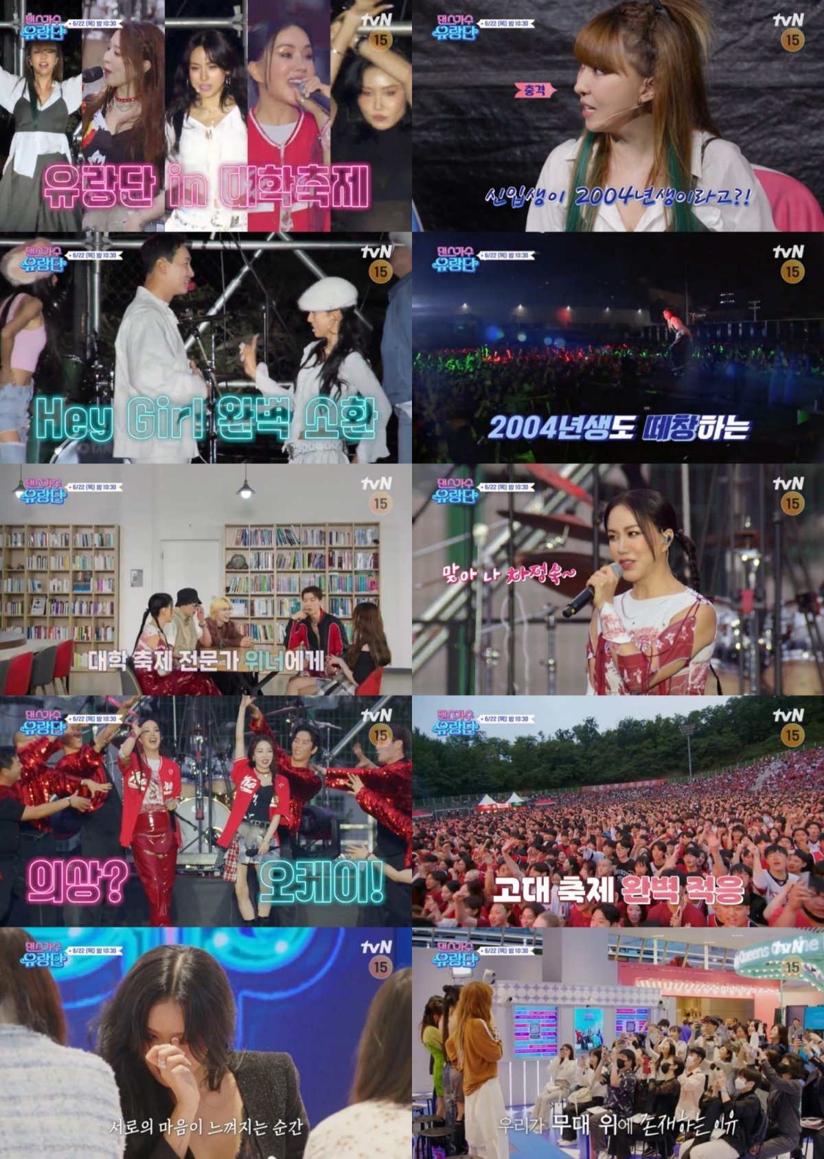유랑단 멤버들의 축제 공연은 2004년생 신입생들이 떼창을 하는 장관이 연출돼 전율을 더할 예정이다. 신입생이 태어나기 전인 90년대 음악부터 2000년대 초반 곡까지 섭렵하는 모습에서 명곡의 힘을 다시 한 번 느끼게 할 전망이다.
