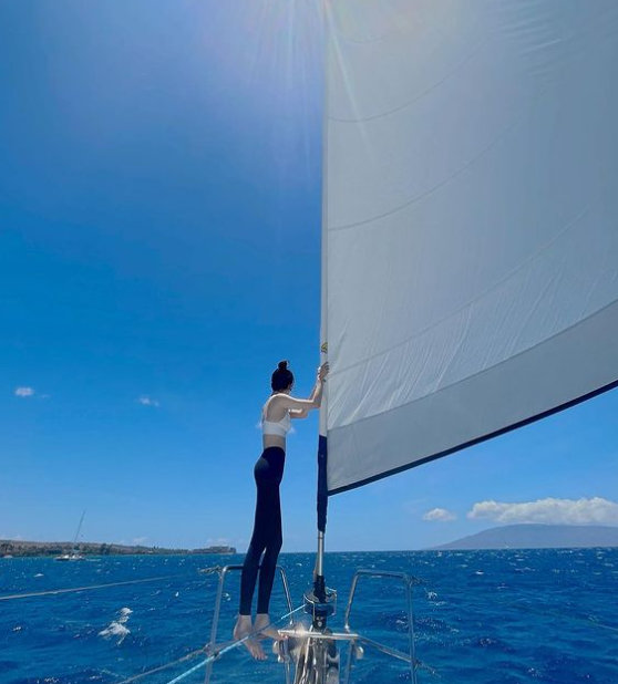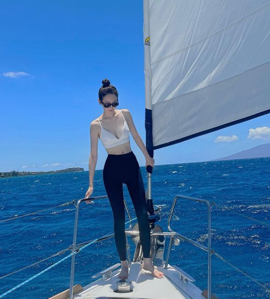 강민경은 24일 자신의 인스타그램을 통해 여행 사진을 여러장 게재했다. 사진 속 그는 브라톱과 레깅스 등 비치웨어를 입고 요트 위에서 다양한 포즈를 취했다. 강민경은 늘씬한 다리와 남다른 S라인으로 부러움을 자아냈다.