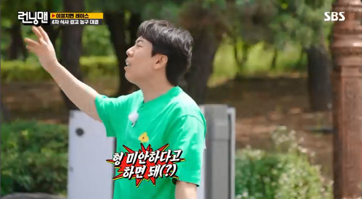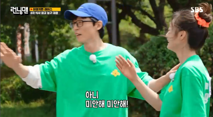 특히 양세찬은 “사과하면 된다. 길거리 놓구는 이 정도는 괜찮다”고 유재석 행동을 옹호했다. 유재석은 “미안해 미안해”라고 웃어넘기며 하하를 달랬다. 자막에는 ‘폭행 사건 발생’이라고 표기됐다. 다행히 하하는 어안이 벙벙한 표정으로 유재석 사과를 받았고, 경기는 다시 진행됐다. 하하 활약으로 경기는 송지효 팀의 승리로 끝났다.