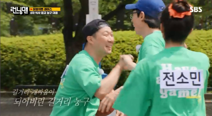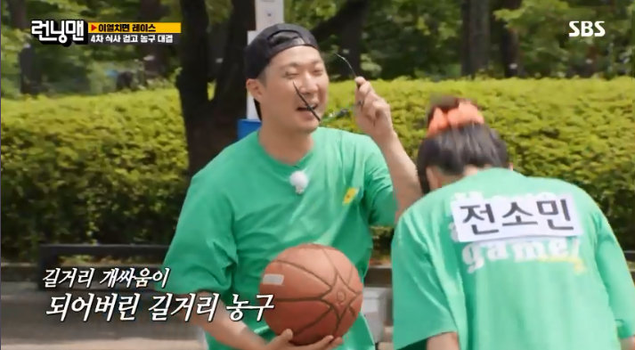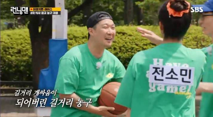 이날 이미 냉면과 콩국수를 잔뜩 먹은 멤버들은 소화를 위해 팀을 나눠 농구 대결을 펼쳤다. 송지효 팀에는 하하와 김종국이, 전소민 팀에는 유재석과 양세찬이 선발됐다. 지석진은 처음에는 송지효 팀으로 선발됐으나, 중간에 전소민 팀으로 옮겼다.