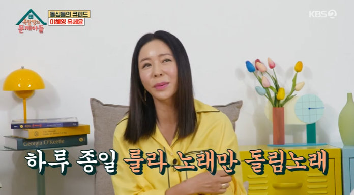 이혜영은 “남편이 흥이 많다”면서 “노래방에 가면 룰라 노래를 불러야 입가심이 되지 않나. 터보까지 왔는데 룰라 노래를 안 부르면 아쉽다”면서 “처음에 만났을 때 서로 뭔가 금지곡이었는데 그러다 어느 날 그냥 ‘부르자!’고 했다. 하루 종일 룰라 노래만 부른 적 있다. 그 파트(?)는 우리 신랑이 한다”고 말했다.