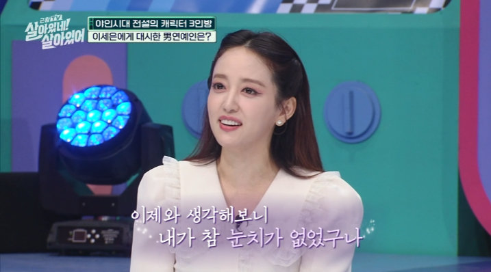 이날 그때 그 시절 이야기를 늘어놓던 출연진들은 이세은에게 “연예인에게 대시 받은 적 있느냐”고 물었다. 이세은은 “나는 몰랐다. 당대 톱가수가 친하게 지내자면서 우리집 앞에 음료수를 들고 서 있었던 적 있다. ‘진짜 친하게 지내고 싶은가보다’ 생각했다. 지나고 생각해보니 내가 참 눈치가 없었구나 싶다”고 일화를 전했다. 출연진들이 정체를 궁금해 하며 캐묻자 이세은은 “솔로 가수였다. 요즘 좀 뜸하신 것 같기도 하고”라고 슬쩍 힌트를 공개해 웃음을 자아냈다.