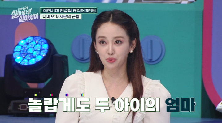 이세은은 “아이가 초등학교 1학년이 되어서 매일 학교에 데리러 가는데 꾸밀 시간도 없어서 늘어진 티셔츠 입고 마스크 쓰고 가곤 했다. 쉰 지 오래 됐으니 아무도 몰라볼 거라고 생각하고 갔는데 어머님들이 다 알고 있었다고 하더라”며 “어느 날 첫째 친구가 ‘너네 엄마 유명하다며? TV에 나온다며?’라고 했다더라. 알고 보니 첫째 자기가 말했다더라. 아이돌에 관심이 많아지니까 엄마가 TV에 나왔으면 좋겠나 보더라. 열심히 나오려고 한다”고 말했다.
