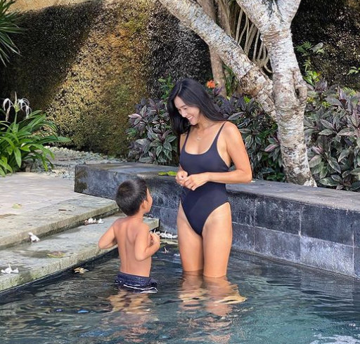 가희는 10일 자신의 인스타그램을 통해 가족들과 함께한 여행 사진을 여러장 공개했다. 사진 속에는 가희가 프라이빗 빌라 수영장에서 물놀이를 하며 한가롭게 여유를 즐기는 모습이 담겼다.