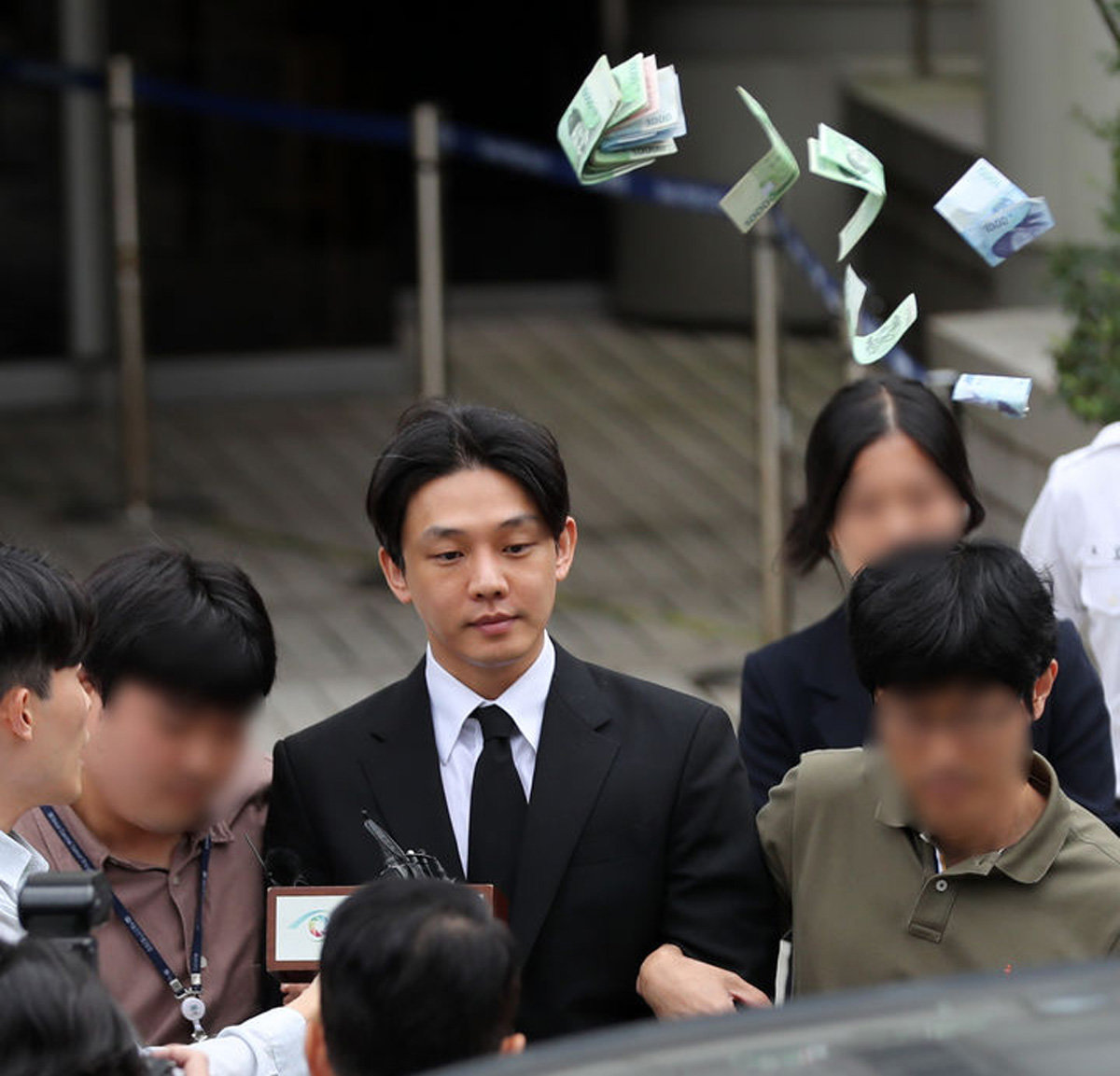 유아인은 21일 오전 피의자심문을 위해 서울중앙지방법원에 출석했다. 이후 2시간가량 피의자심문을 마친 유아인은 취재진에 “증거 인멸은 사실이 아니다. 사실대로 법정에서 잘 진술했다”고 검찰 주장을 부인했다. 이때 유아인을 향해 한 시민이 영치금에 쓰라며 지폐 다발을 뿌렸다.