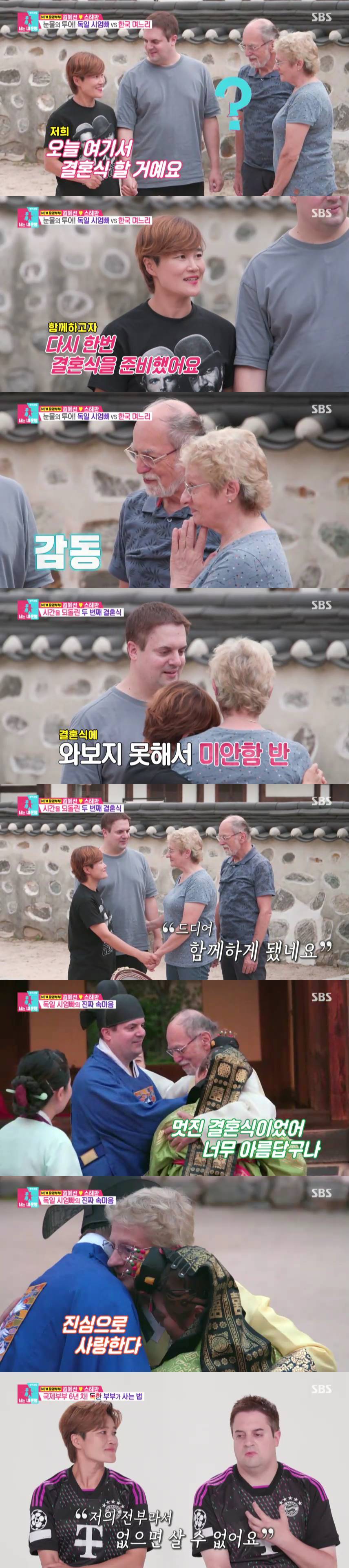 또한, 이날 김혜선과 스테판은 여름을 맞아 처음으로 한국을 방문한 스테판의 부모님을 모시고 두 번째 결혼식을 올렸다. 과거 건강 문제 등으로 결혼식에 함께하지 못한 시부모님을 위한 것이었다. 시부모님은 울컥한 듯 눈물을 흘렸고 “저희를 위해 다시 한다는 게 정말 감동이다”라며 고마움을 표했다. 이날 김혜선, 스테판이 준비한 깜짝 결혼식 소식에 감동의 눈물을 흘린 시부모님의 모습은 보는 이들의 마음까지 뭉클하게 하며 분당 시청률 9.4%로 ‘최고의 1분’을 차지했다.