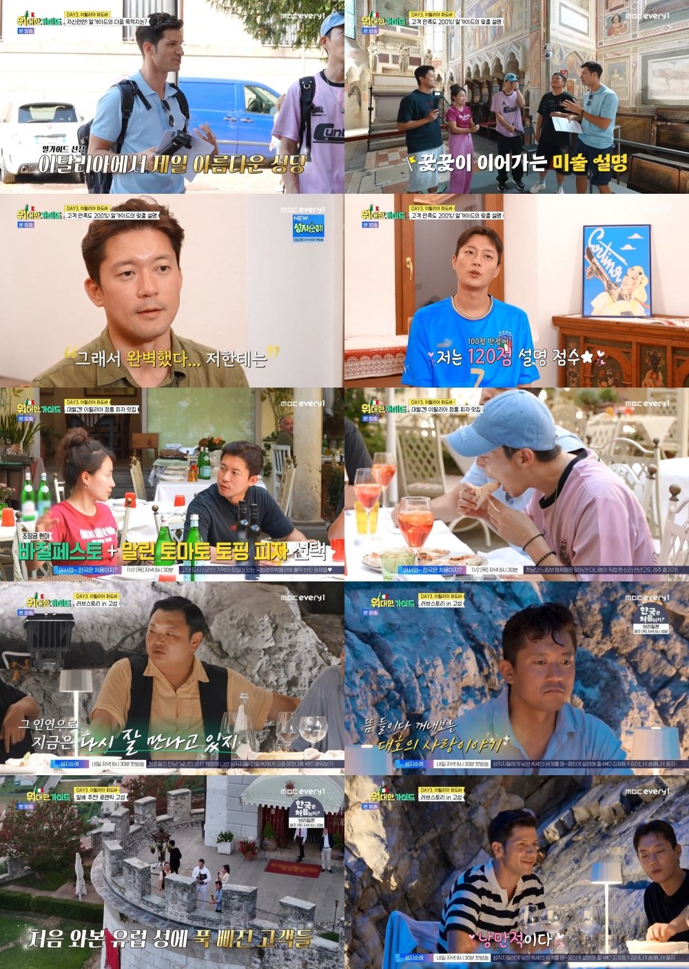 지난 30일 방송된 MBC에브리원 ‘위대한 가이드’ 3회에서는 이탈리아의 보석 같은 소도시 ‘파도바’ 여행기가 펼쳐졌다. 고규필, 김대호, 윤두준, 조현아는 알베르토 몬디가 소개하는 파도바의 매력에 푹 빠져 옛사랑을 추억하는 등 역대급 리액션을 보여줬다.
