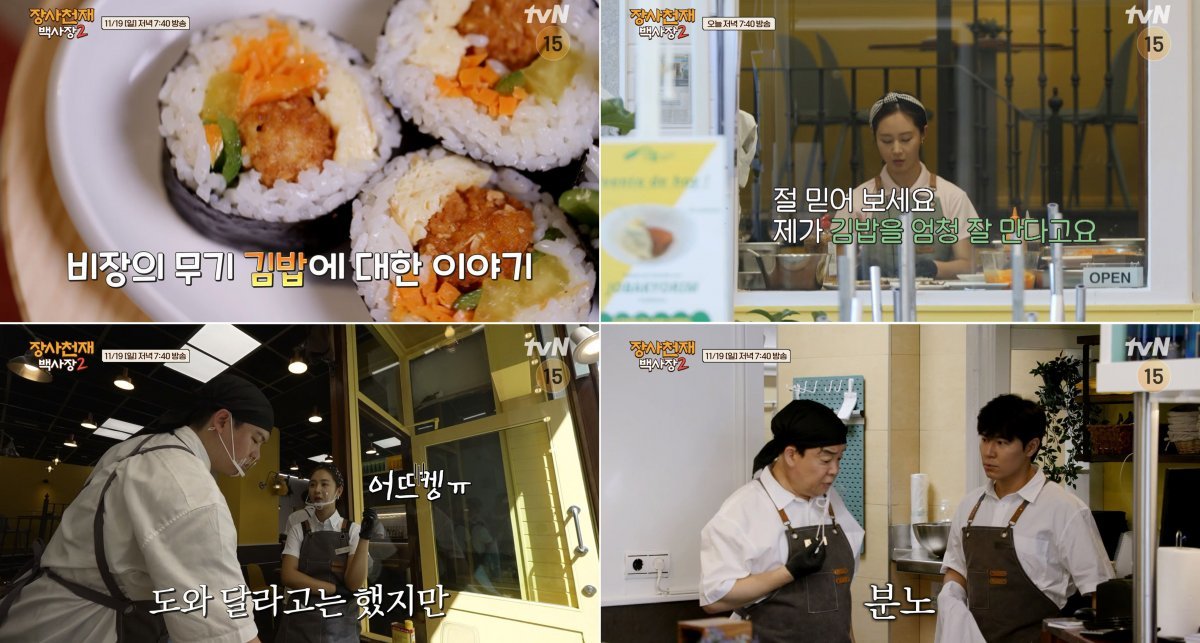 ‘김밥’ 소동이 펼쳐질 tvN ‘장사천재 백사장2’ 4회는 오늘(19일) 일요일 저녁 7시 40분 방송된다.