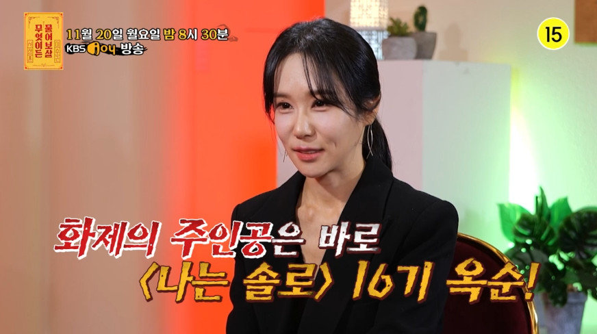 20일 KBS Joy ‘무엇이든 물어보살’ 242회에서는 보살들을 깜짝 놀라게 한 화제의 인물 ‘나는 솔로’ 16기 출연자 ‘옥순’이 등장한다.