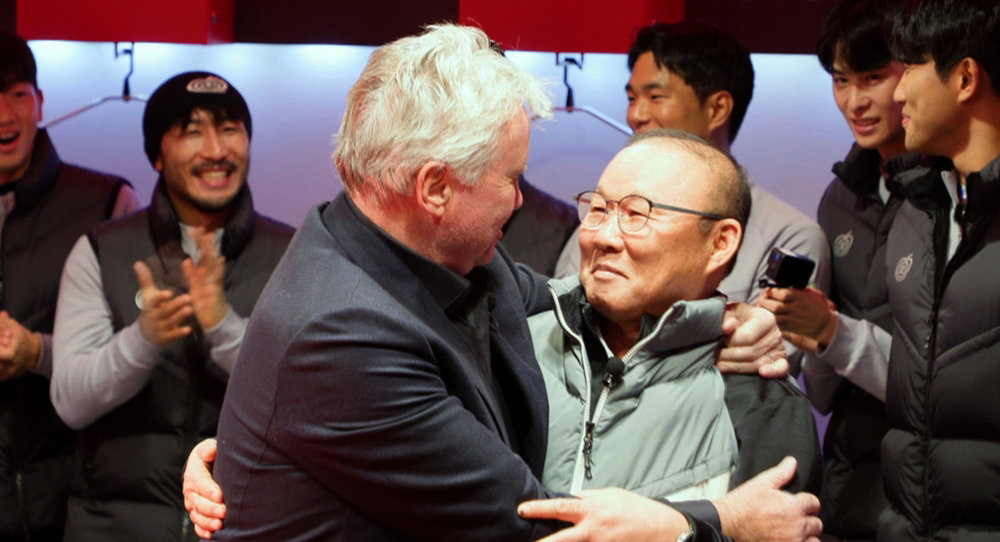 상상하지 못했던 박항서 감독의 등장에 놀란 히딩크 감독은 버선발로 달려나간다. 그립던 얼굴을 마주하고 20여 년 전처럼 포옹하는 두 사람의 모습은 안정환 감독도 뭉클하게 만들었다고.