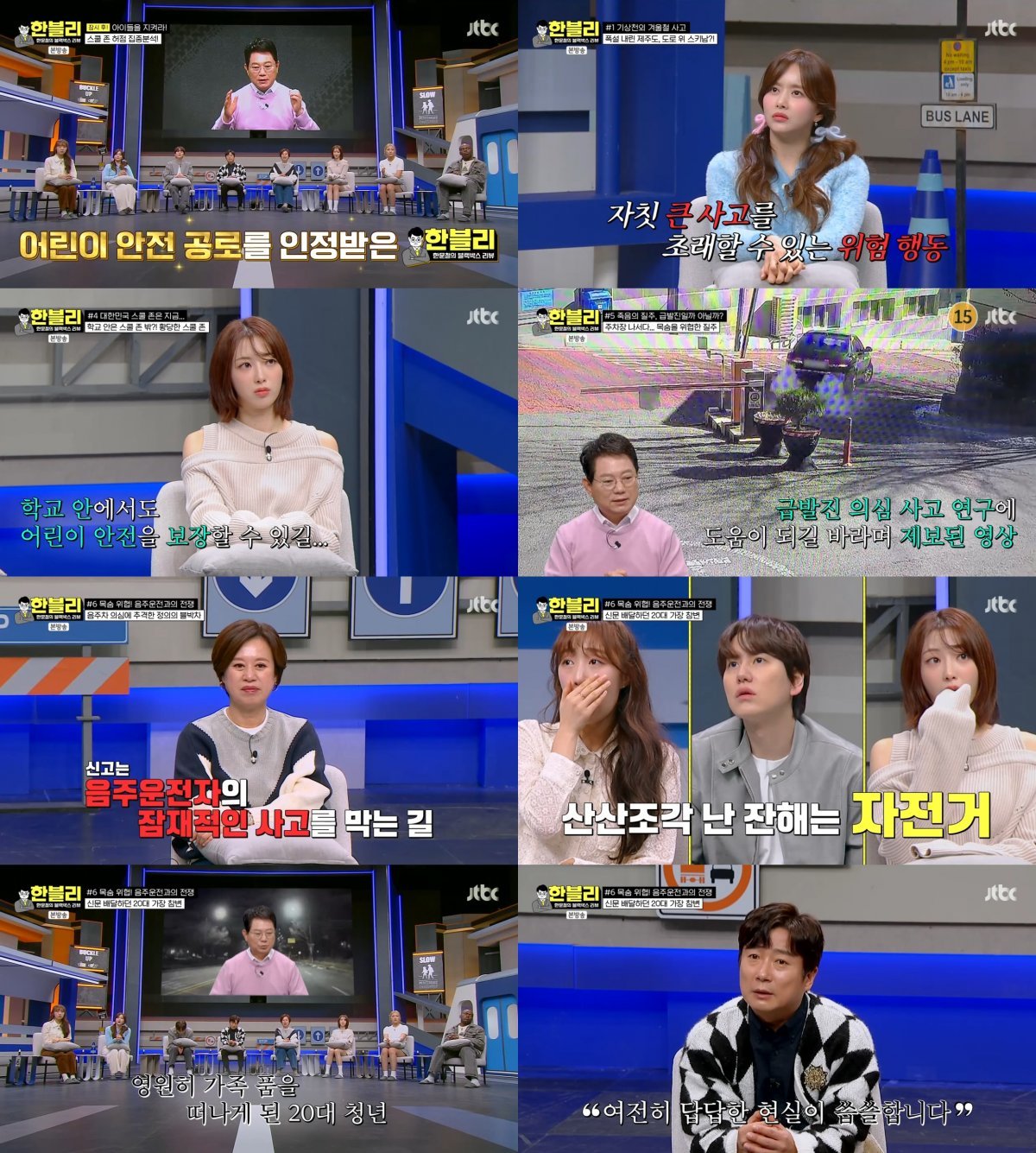 16일 방송된 JTBC ‘한문철의 블랙박스 리뷰’(약칭 ‘한블리’)에서는 참담한 비극을 낳은 음주운전 사고와 무단횡단 사고, 버스 승객 사고 등 예측할 수 없이 벌어지는 사건, 사고들을 다뤘다.