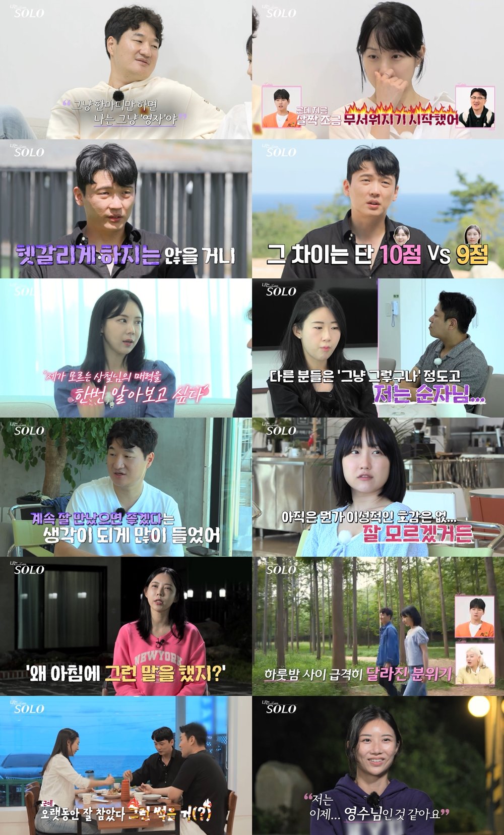 숙소로 돌아온 영자는 다른 솔로녀에게 “광수님이 확신이 생겼다고 말해줬는데, 갑자기 그게 무서워졌어. 진짜 프러포즈하는 느낌? 광수님을 피해야 할 것 같다”라고 부담감을 토로했다. 영수와 ‘한밤 데이트’를 마친 영숙 역시 “계속 도돌이표”라며 “결국 (대화가) 흐지부지 끝났지”라고 ‘장거리 연애’를 이유로 간을 보는 듯한 영수의 태도에 불만을 터뜨렸다.