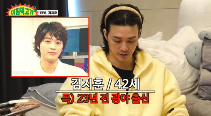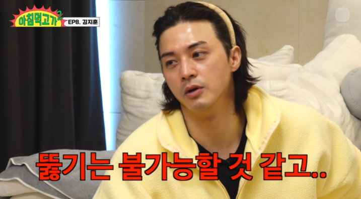 김지훈은 23일 공개된 유튜브 예능 ‘아침먹고 가’에 게스트로 출연했다. ‘아침먹고 가’는 장성규가 게스트를 깨워주고 밥도 챙겨주며 하루를 응원해주는 웹예능이다.
