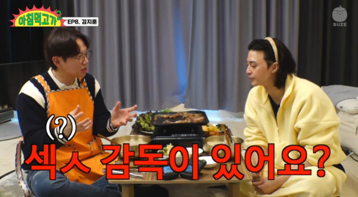 이에 장성규는 “흥분해서 신체적인 변화가 있으면 뚫고 나올 수 있냐”고 물었고 김지훈은 “뚫기는 불가능할 것 같다. 변강쇠도 안 될 것 같다. 연기적으로 신경 쓸 게 많으니까 전혀 그렇게 될 수 없다. 연기하고 있는 거니까”라고 대답했다. 장성규는 여기서 그치지 않고 “무술 감독처럼 섹스 감독이 있냐”고 짓궂게 물었고 김지훈은 황당해하면서도 “지도해주시는 감독님은 안 계신다. 우리끼리 합의한다”고 친절하게 알려줬다.