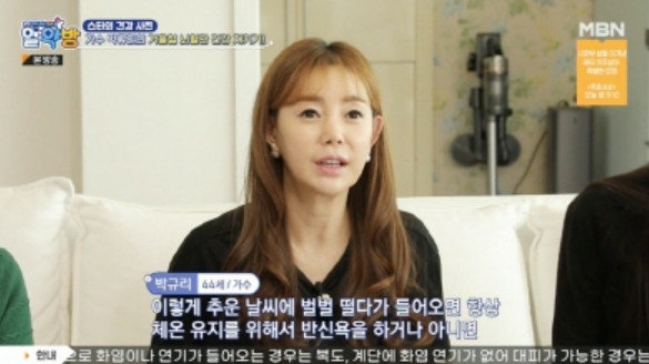 박규리는 7일 방송된 MBN의 건강 프로그램 ‘알약방’에서 친정엄마와 함께 ‘기공 체조’를 하며 등장했다.