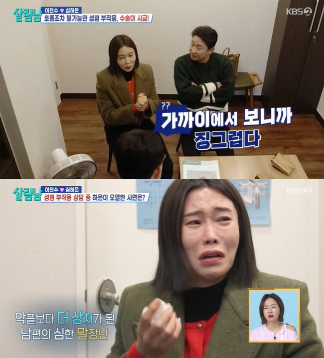 지난 21일 방송된 KBS 2TV ‘살림하는 남자들 시즌2’에서는 심하은이 성형 부작용을 호소했다. 남편 이천수와 함께 헬스장을 찾은 그는 강도 높은 운동에 호흡 곤란을 호소했다.