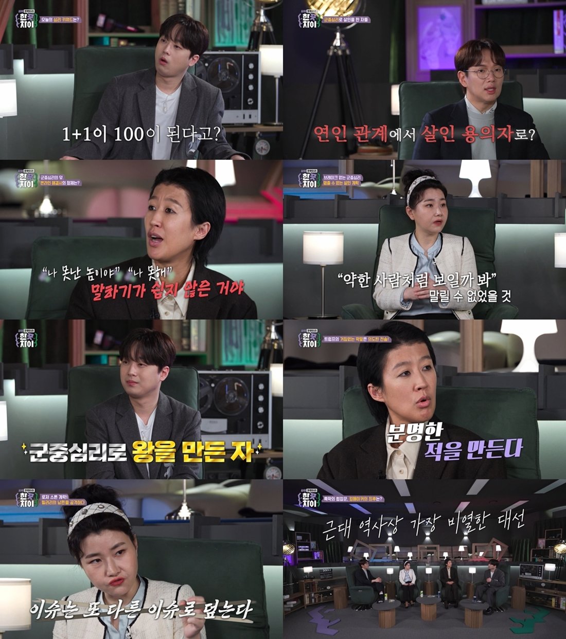 20일 티캐스트 E채널 \'한끗차이\'에서는 \'1+1=100\'이 되는 마법, \'군중심리\'에 대해 파헤쳤다. \'군중심리\'로 인해 누군가는 끔찍한 범죄자, 누군가는 뜻밖의 권력을 거머쥐게 만드는 인간 본성의 한 끗 차이는 무엇인지 샅샅이 들여다봤다.
