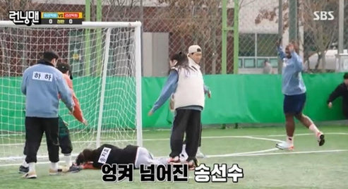 이후 양 팀은 조나단과 송지효의 활약이 계속되며 4;4 동점 스코어까지 가는 팽팽한 접전을 벌였다. 하짐나 경기 막판 하하가 다리에 쥐가 나는 돌발 상황이 발생했다. 이를 놓치지 않은 송지효가 ‘골잡이 면모’로 동점골을 터트려 김감독 팀에 승리를 안겼다.