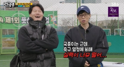 지난 24일 방송된 ‘런닝맨’은 ‘제1회 풋살 런닝컵’ 레이스로 꾸며져 유재석과 김종국이 각 풋살팀의 감독으로 나서 맞대결을 펼쳤다.