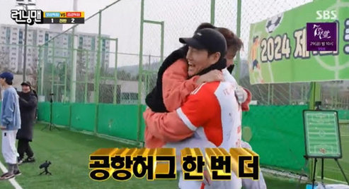 경기 초반부터 김종국은 상대팀 선수로 출전한 ‘조나단 흔들기’에 나섰다. 조나단이 송지효에게 공을 뺏기자 “나단이 왜 저러지? 어디 몸이 안 좋나?”라며 걱정을 가장한 비난 공격에 나섰다. 이에 힘입은 송지효가 최전방에서 골을 터트리며 맹활약했다. 송지효는 거듭한 활약에 기쁨을 주체 하지 못하고 김종국에게 달려가 2002 월드컵을 연상시키는 격한 허그로 웃음을 자아냈다.