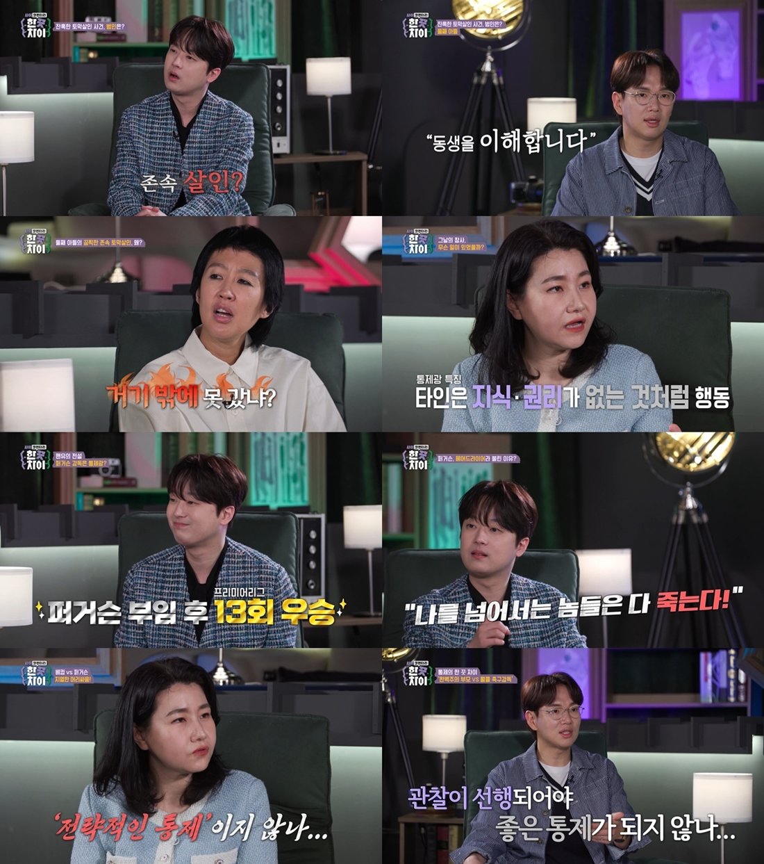 전대미문 존속 토막살인 사건에 모두가 경악하던 그때, 범인의 형은 "동생을 이해합니다"라고 반응해 충격을 더했다. 이후 공개된 둘째의 일기장에는 '밥 늦게 먹는다고 젓가락 던진 것', '키가 작아 사회생활 못할 거라 한 것' 등 어릴 적부터 부모에게 받은 학대 리스트가 빼곡하게 적혀 있었다. 이 일기를 본 박지선 교수는 "엄마의 높은 기준에 아이를 맞추려고 한 것 같다"라며, "명문대 출신이지만 사회생활을 안 해본 엄마가 본인이 못 해본 걸 자식을 통해 이루려고 했을 가능성이 있다"라고 분석했다.