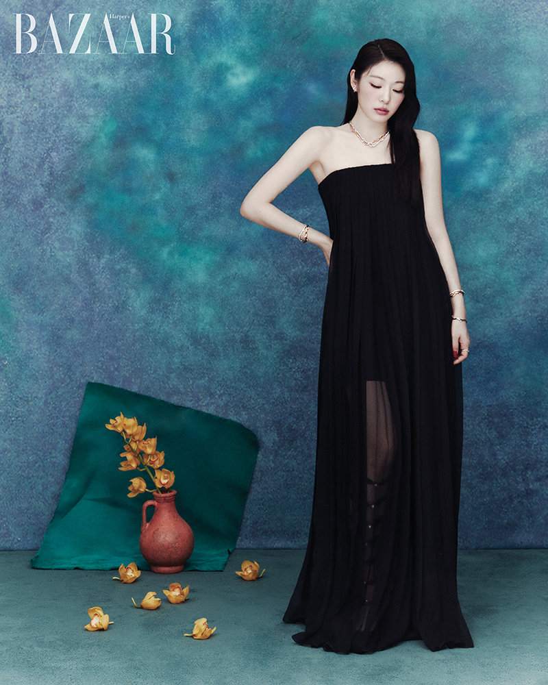 이번 화보에서 김연아는 컬러풀한 정물, 흐드러지게 핀 꽃과 함께 포즈를 취하며 한 폭의 그림을 연상케 했다. 블랙 드레스를 입고 도자기처럼 맑고 고아한 피부를 한층 더 돋보이게 하기도. 청초함과 우아함 속에서도 본연의 카리스마도 잃지 않은 모습이 인상적이다.