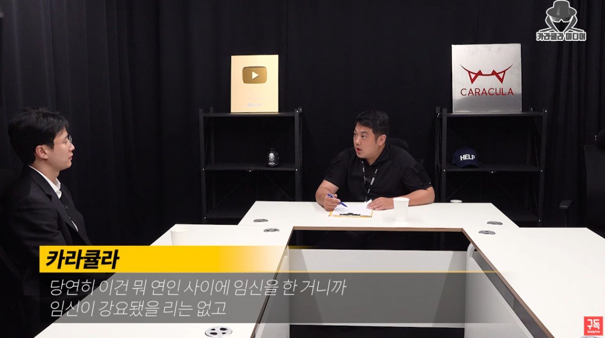카라큘라는 "두 번째 낙태를 하기 전에 카카오톡으로 '골프장에 있다', '나 지금 골프하잖아' 하는 식으로 굉장히 귀찮은 듯한 뉘앙스로 답하는 걸 봤다. 미지근하게 한 이유는 뭐냐"고 물었다.