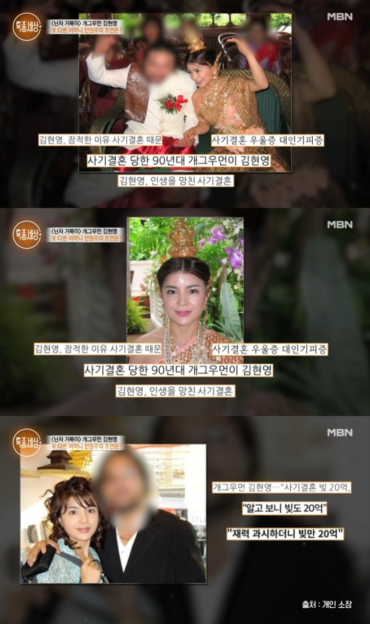 지난 11일 오후 방송된 MBN ‘특종세상’에는 90년대에 활발히 활동했던 개그우먼 김현영이 자신의 사기 결혼에 관해 이야기를 하는 장면이 그려졌다.