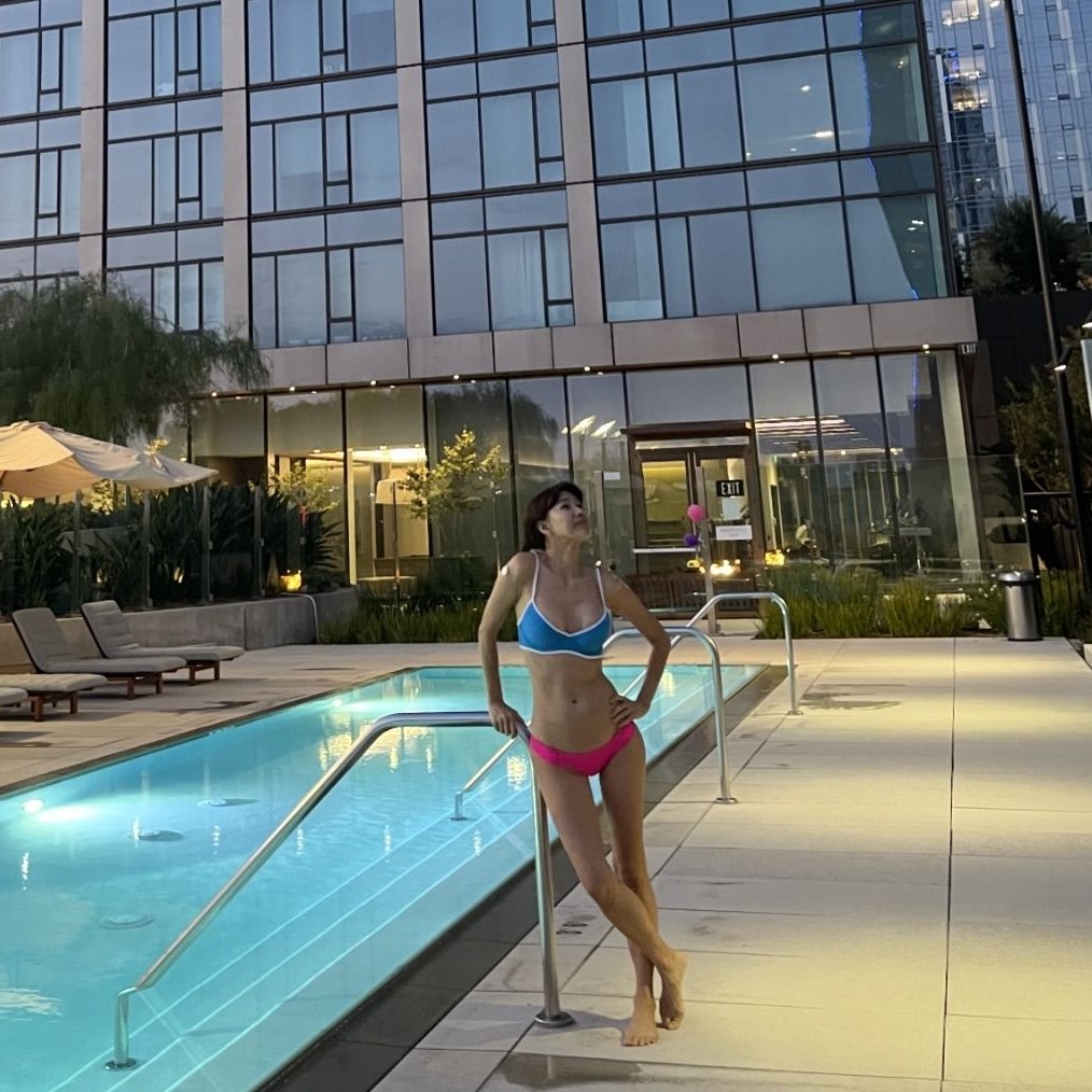 공개된 사진 속 윤현숙은 수영장에서 여유을 즐기고 있다. 블루&핑크의 비키니를 입은 윤현숙은 군살 하나 없는 탄탄한 몸매로 20대 못지 않은 비주얼을 뽐내 감탄을 자아냈다.