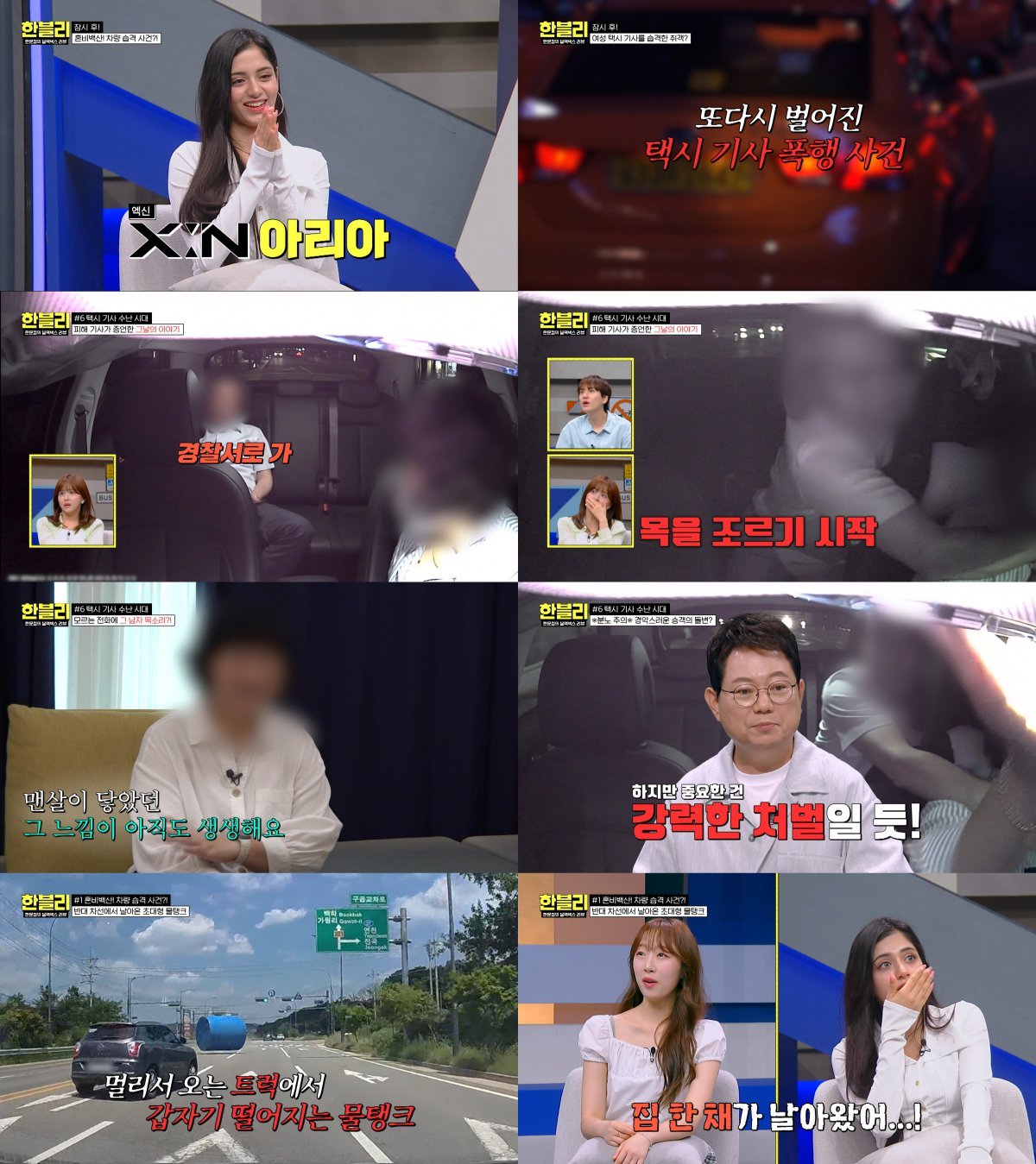 차를 습격한 다양한 사건·사고 영상도 공개됐다. 반대편 차선에서 달려오던 트럭 뒤에 실린 초대형 물탱크가 떨어져 엄청난 속도로 블박차(블랙박스 탑재 차량)를 향해 돌진했다. 결국 초대형 물탱크는 블박차 앞에서 차선 변경했던 차량을 충격했고, 충격 당한 차량과 블박차 모두 오른쪽 가드레일에 부딪히며 멈췄다. 이에 수빈은 "집 한 채가 날아왔다"라며 놀라움을 금치 못했다.