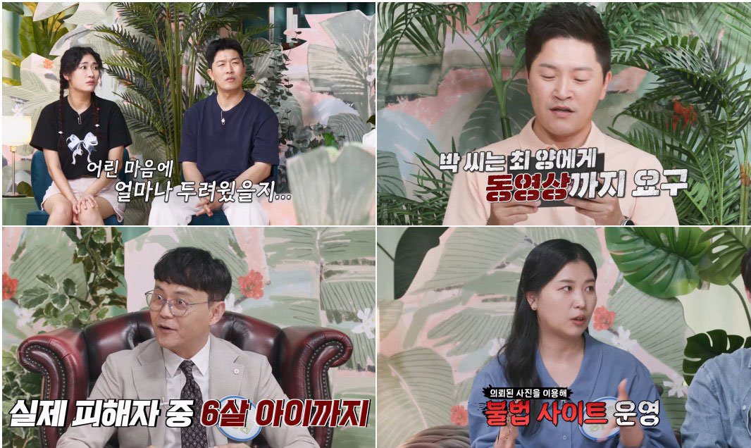안타깝고 분통터지는 사건에 출연자들은 말을 잇지 못하고 혀를 끌끌 찼다. 도경완은 “이게 현실에서 벌어지는 사건이냐”라며 믿기 어려워했다. 신중권 변호사는 “실제 피해자 중에 6살도 있다”라며 더 최악인 상황을 전해 모두의 분노를 유발했다. 성교육 강사 정한솔은 “유명한 'N번방' 사건 때 사진을 지워주겠다며 돈을 받아 놓고는 불법 사이트를 운영해 또 사진을 판매한 경우가 있었다”라고 고발했다. 이에 장윤정은 “기생충 같은 놈들이네”라며 울분을 토했고, 김미려도 “왜 그러는 거야. 나쁜 사람들...”이라며 탄식했다.