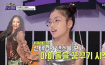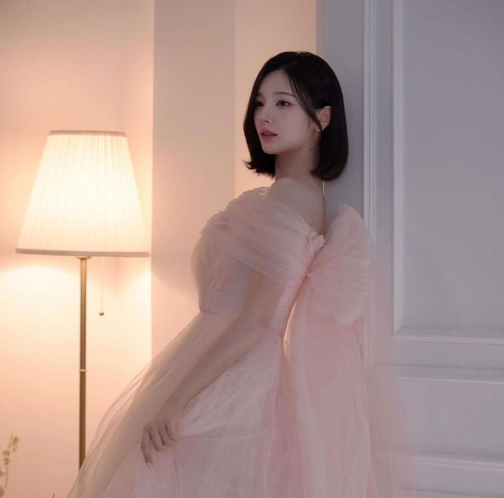 소희는 핑크톤의 드레스를 입고 포즈를 취하고 있는 모습. 등에 달린 리본까지 완벽히 어우러져 눈길을 끈다.